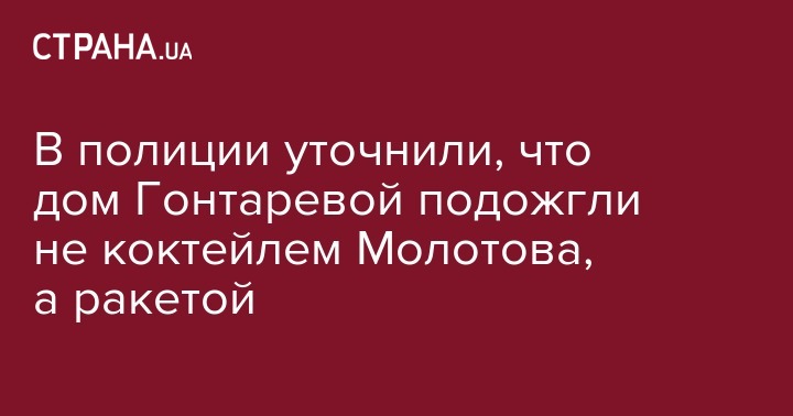 В полиции уточнили, что дом Гонтаревой подожгли не коктейлем Молотова, а ракетой