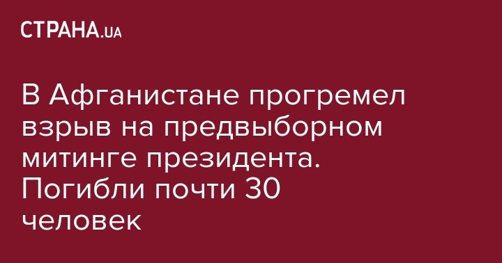 В Афганистане, в местечке Чарикар (провинция Парван) прогремел взрыв во время предвыборного митинга президента Ашрафа Гани. Об этом передает местный телеканал Tolo News со ссылкой на пресс-секретаря МВД Афганистана.