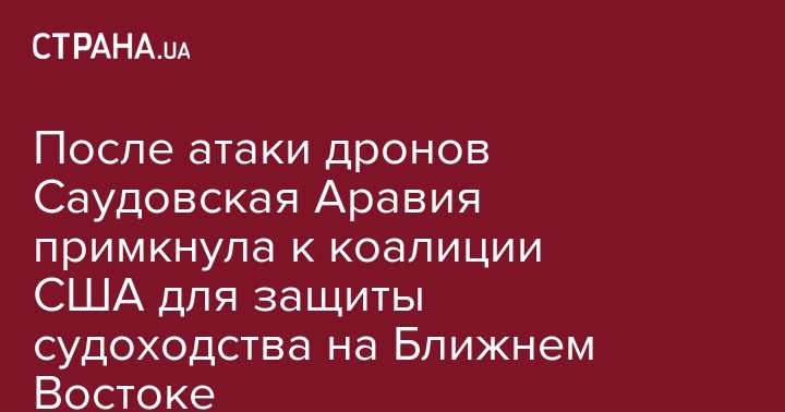 Саудовская Аравия после дрон-атаки хуситов на ее нефтеперерабатывающий завод присоединится к коалиции для обеспечения безопасности морских путей Ближнего Востока. Об этом со ссылкой на информационное агентство SPA пишет "Интерфакс".