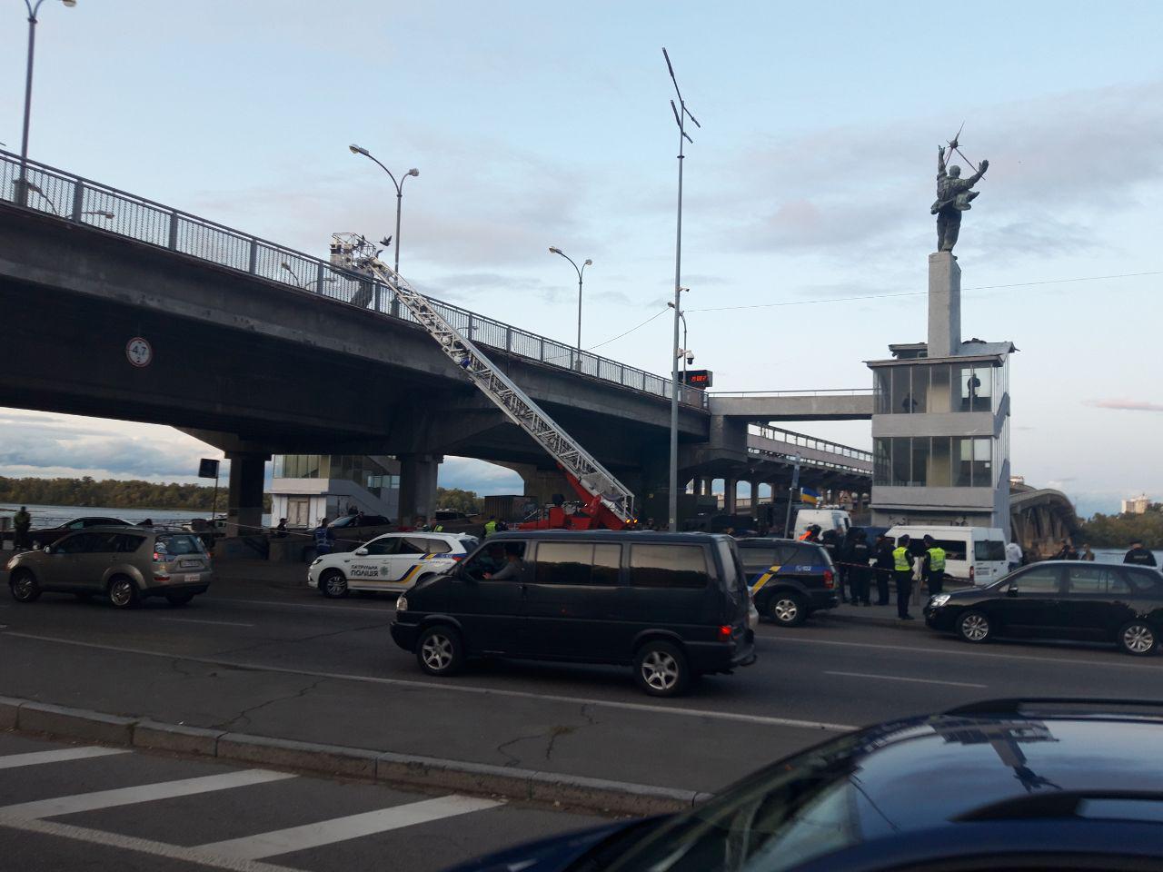 Как сообщалось ранее, в Киеве перекрыли мост Метро. Мужчина заехал на мост, остановился посреди него, вышел и угрожает его взорвать. Следователи столичной полиции квалифицируют инцидент как подготовку к террористическому акту. На мосту Метро находятся наряды патрульных, кинологи со служебными собаками, спецназ и специалисты взрывотехнической службы.