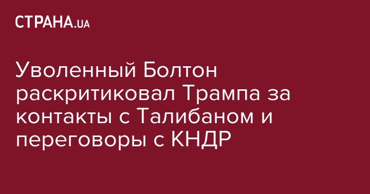Уволенный Болтон раскритиковал Трампа за контакты с Талибаном и переговоры с КНДР
