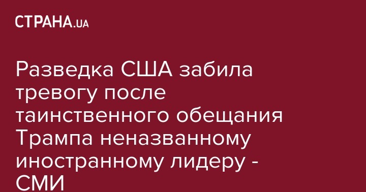 Разведка США забила тревогу после таинственного обещания Трампа неназванному иностранному лидеру - СМИ