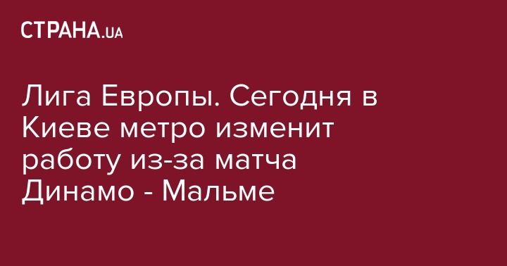 В четверг, 19 сентября, в связи с проведением на стадионе НСК "Олимпийский" футбольного матча между командами Динамо (Киев) и Мальме (Швеция) возможны некоторые изменения в работе столичного метрополитена. Об этом сообщается на сайте метрополитена.