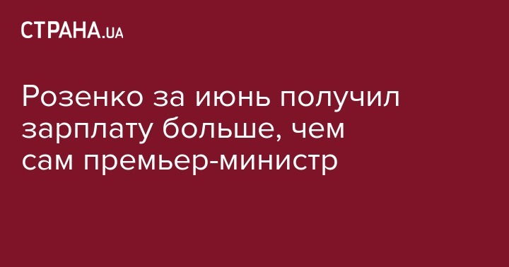 Вице-премьер-министр Павел Розенко в июне получил зарплату больше, чем сам премьер-министр Владимир Гройсман. Июньская зарплата Розенко составила 29 360,53 грн. Об этом говорится в ответе Кабмина на запрос "Украинских Новостей"