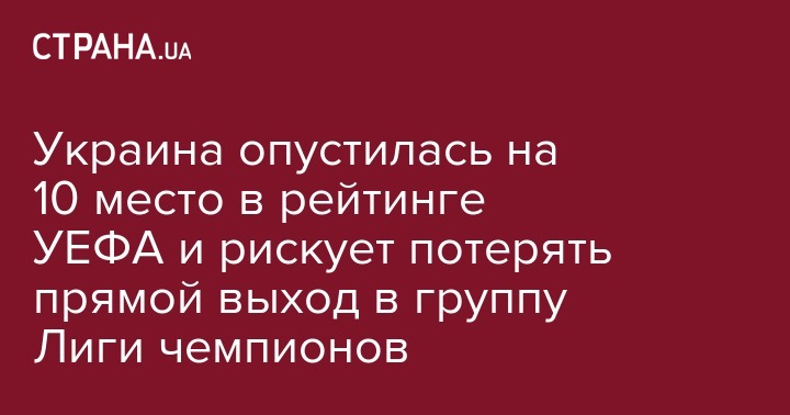 Украина опустилась на 10 место в рейтинге УЕФА и рискует потерять прямой выход в группу Лиги чемпионов