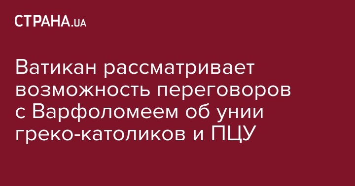 Ватикан рассматривает возможность переговоров с Варфоломеем об унии греко-католиков и ПЦУ