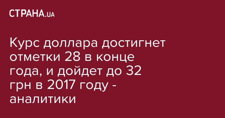 Курс доллара достигнет отметки 28 в конце года, и дойдет до 32 грн в 2017 году - аналитики