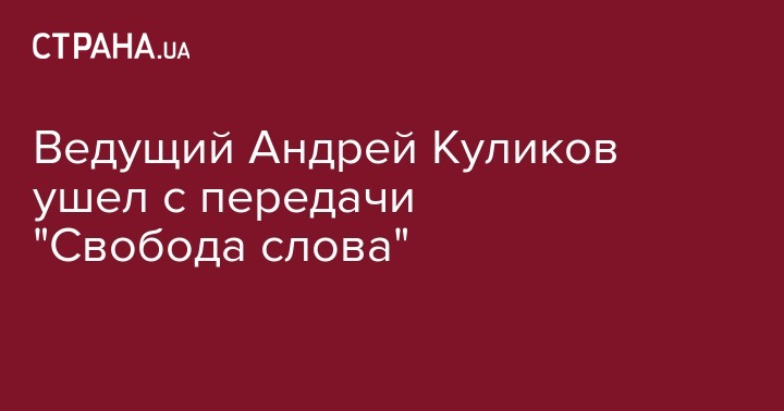 Телеведущий Андрей Куликов заявил, что 11 июля провел последний эфир "Свободы слова" на ICTV и теперь его заменят двое других ведущих. Об этом Куликов сообщил "Детектор Медиа".