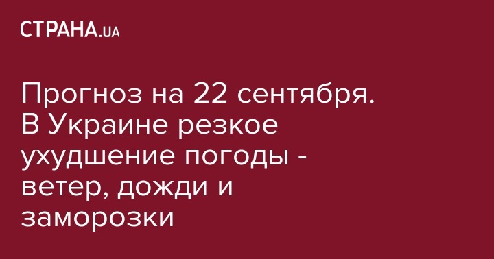 Прогноз на 22 сентября. В Украине резкое ухудшение погоды - ветер, дожди и заморозки