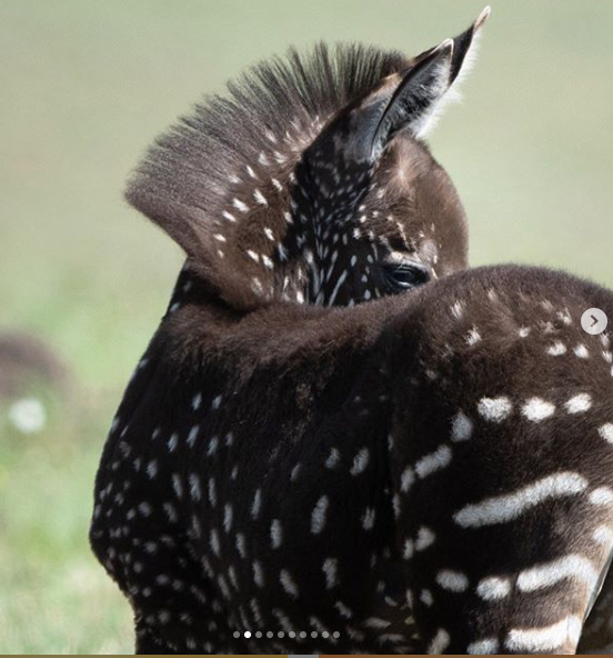 "В Масаи-Мара заметили генетически мутировавшего детеныша зебры, его назвали Тира. Мы были одними из первых, кто посетил Тиру! Несколько лет назад был подобный случай, однако та зебра все же имела полоски и хвост, напоминавший кисточку. А вот Тира имеет совсем другой окрас, который выглядит как горошек! Надеюсь, эксперты разберутся в этом деле и вскоре поделятся интересными открытиями", - написал автор фото.