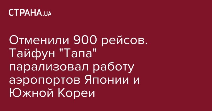 В Японии и Южной Корее из-за тайфуна "Тапа" отменили более 900 авиарейсов. Об этом сообщает РИА "Новости".