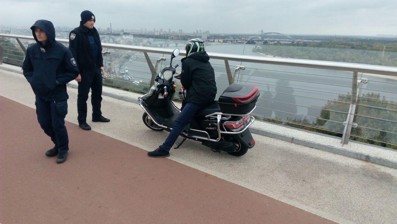 На стеклянном мосту в Киеве патрульные задержали пьяного водителя электромопеда. Фото
