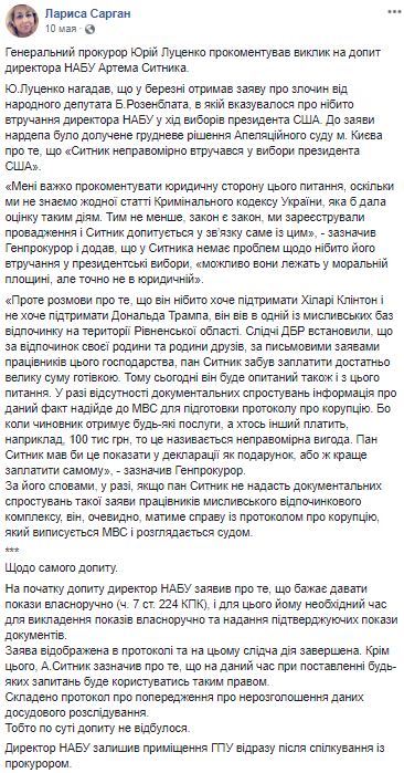 "Более того, НАБУ во главе с Сытником прямо было задействовано по указанию демократов в организации дел против Пола Манафорта. То есть, по понятиям Трампа, Сытник является участником Украиногейта - дела о вмешательства Украины в американские выборы на стороне Хиллари Клинтон. Сытник - креатура демократов, которые долгое время правили бал в американском посольстве в Украине. И до сих пор они влиятельны в Госдепе. Например, там работает Джордж Кент - бывший заместитель посла США в Киеве. Кент стоял у истоков создания НАБУ и активно лоббировал Сытника. Продолжает делать это и сейчас. Но это не позиция Трампа и не позиция Белого дома", - говорит источник в дипломатических кругах.