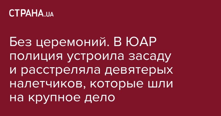Без церемоний. В ЮАР полиция устроила засаду и расстреляла девятерых налетчиков, которые шли на крупное дело