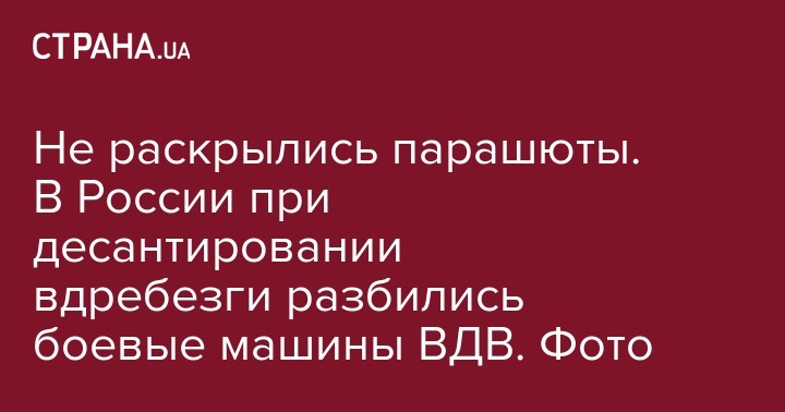 В пятницу, 20 сентября, в России во время десантирования боевой техники на учениях воздушно-десантных войск разбились две боевые машины десанта (БМД). Фото последствий аварии опубликованы в соцсети "Вконтакте".