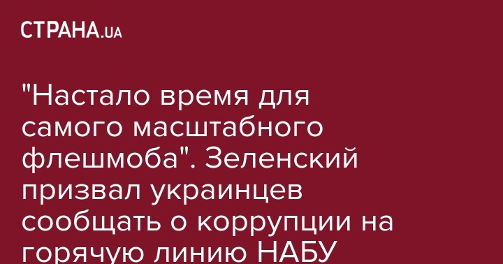 Президент Украины Владимир Зеленский обратился к украинцам с призывом сообщать о любых проявлениях коррупции на горячую линию НАБУ. Соответствующее видеообращение опубликовано в Facebook главы государства.