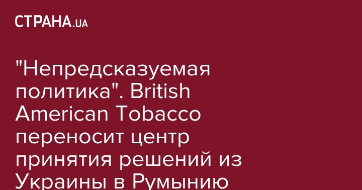 "Непредсказуемая политика". British American Tobacco переносит центр принятия решений из Украины в Румынию