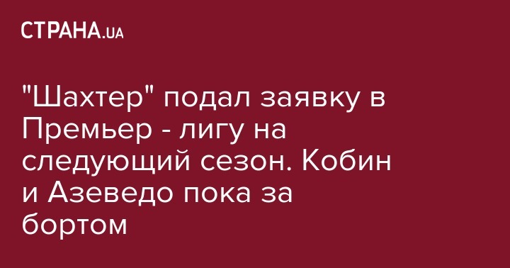 "Шахтер" подал заявку в Премьер - лигу на следующий сезон. Кобин и Азеведо пока за бортом