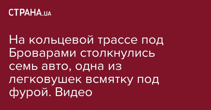 На кольцевой трассе под Броварами столкнулись семь авто, одна из легковушек всмятку под фурой. Видео