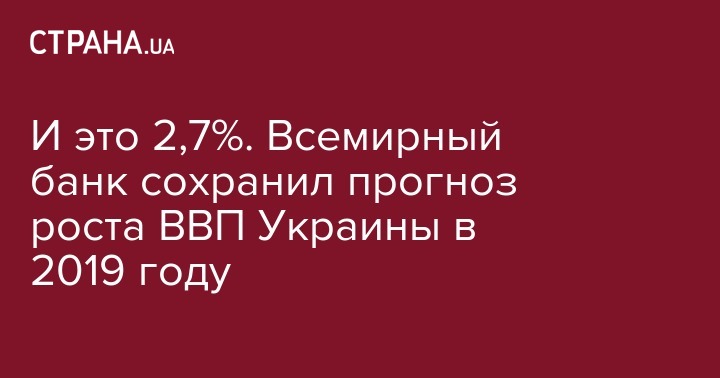 И это 2,7%. Всемирный банк сохранил прогноз роста ВВП Украины в 2019 году