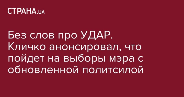 Мэр Киева Виталий Кличко анонсировал представление некоей "обновленной" политической силы, с которой он планирует участвовать в грядущих местных выборах. Действующий лидер партии "УДАР" название этой политсилы не упомянул.