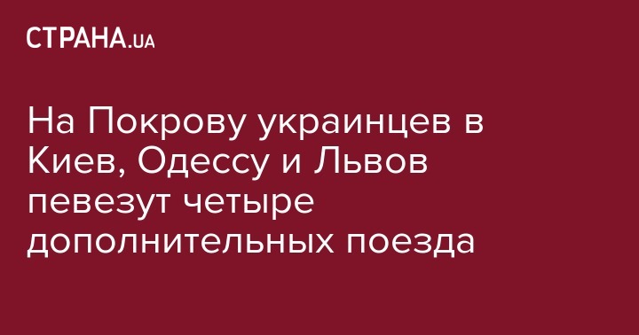 На Покрову украинцев в Киев, Одессу и Львов певезут четыре дополнительных поезда