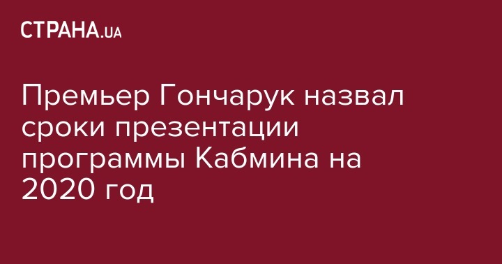 Премьер Гончарук назвал сроки презентации программы Кабмина на 2020 год