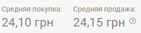 В обменках по состоянию на 08:00 средняя покупка 24,10 грн, средняя продажа - 24,16 грн. В обед ситуация не изменилась.