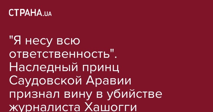 Наследный принц Саудовской Аравии Мохаммед бен Салман заявил, что он ответственен за убийство журналиста Джамаля Хашогги в октябре прошлого года. Об этом сообщает Public Broadcasting Service.