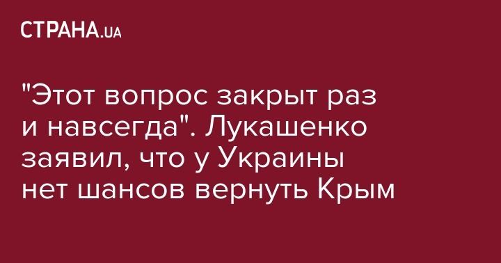 На прямой вопрос журналистки о том, вернет ли Россия аннексированный Крым Украине, Лукашенко ответил: "Мне кажется, нет. Этот вопрос закрыт раз и навсегда".