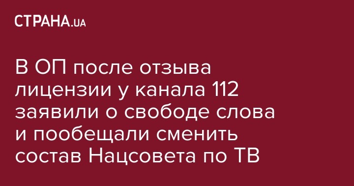 В ОП после отзыва лицензии у канала 112 заявили о свободе слова и пообещали сменить состав Нацсовета по ТВ