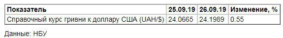Так, справочный курс гривни к доллару США на межбанковском валютном рынке по состоянию на 12:00 26 сентября составляет 24,20 грн/$1.