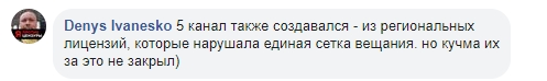 Журналист Денис Иванеско напомнил: "5 канал также создавался - из региональных лицензий, которые нарушала единая сетка вещания. Но Кучма их за это не закрыл".