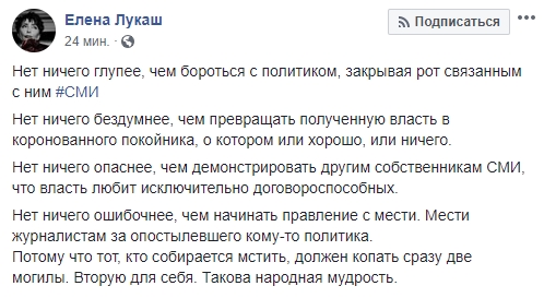 Нет ничего ошибочнее, чем начинать правление с мести. Мести журналистам за опостылевшего кому-то политика. Потому что тот, кто собирается мстить, должен копать сразу две могилы. Вторую для себя. Такова народная мудрость".