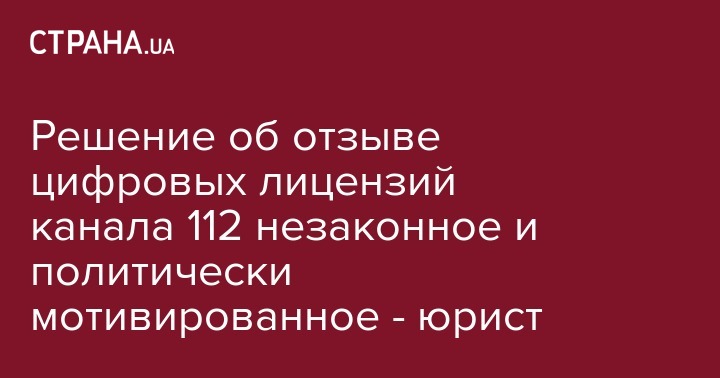 Решение не продлевать лицензию на цифровое вещание телеканалу "112 Украина" Национальным советом по вопросам теле- и радиовещания было политически мотивированным и незаконным. Об этом заявил юрист телеканала Василий Сметана, пишет сайт 112.ua