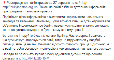 По словам Ульяны Супрун, 67% украинских школьников в 2017 году пострадали от буллинга. Подавляющее большинство детей (48%) никому не рассказывали об этом опыте. Экс-чиновница назвала такую ситуацию крайне опасной, ведь буллинг влияет на психическое и эмоциональное здоровье, а также на физическое состояние ребенка и может привести к необратимым последствиям.