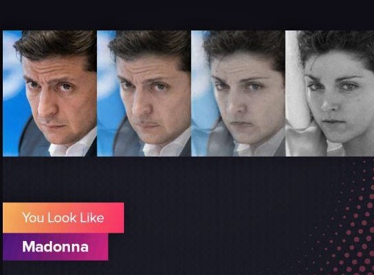 Вторая попытка также не нашла для Зеленского звездного двойника среди мужчин. Результат - сходство с американской  поп-дивой Мадонной.