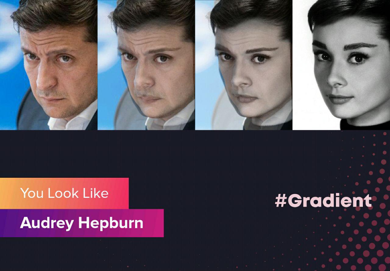 Зеленский, как считает Gradient, похож на британскую актрису и фотомодель Золотого века Голливуда - Одри Хепберн. По всей видимости, программа считала пронзительный взгляд, яркие черты лица и удачный ракурс.