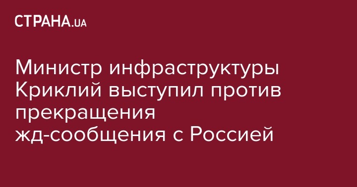 Глава Мининфраструктуры Владислав Криклий заявил, что с экономической точки зрения не выгодно прекращение железнодорожного сообщения Украины с Россией. Об этом Криклий сказал в интервью "ЭП".