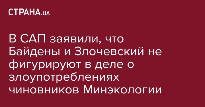 В САП заявили, что Байдены и Злочевский не фигурируют в деле о злоупотреблениях чиновников Минэкологии