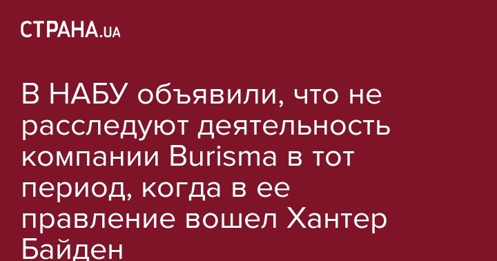 В НАБУ заявили, что проверка деятельности членов правления компании в периоды, которые не имеют отношения к расследованию, не является их задачей. Таким образом они сообщили, что их расследование не касается 2014 года, когда сын бывшего в то время вице-президента США Хантер Байден стал членом совета директоров Burisma Limited.