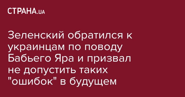 Зеленский обратился к украинцам по поводу Бабьего Яра и призвал не допустить таких "ошибок" в будущем