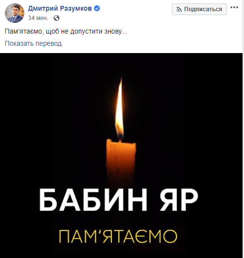 Отметим, что в день памяти чиновники и политики на страницах в соцсетях размещают траурные свечи. Так, спикер Верховной Рады Дмитрий Разумков в Facebook написал: "Помним, чтобы не допустить снова".