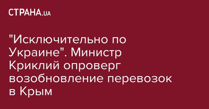 "Исключительно по Украине". Министр Криклий опроверг возобновление перевозок в Крым
