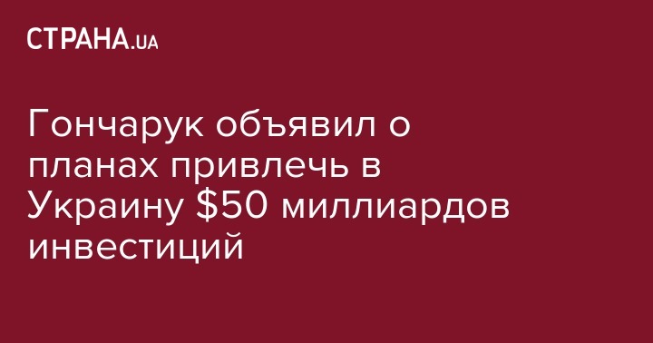 Кабинет министров в программе деятельности правительства устанавливает цель привлечь $50 млрд инвестиций для роста ВВП на 40% за пять лет. Об этом сообщил премьер-министр Алексей Гончарук на брифинге, говоря о программе деятельности правительств, сообщает "Интерфакс-Украина".