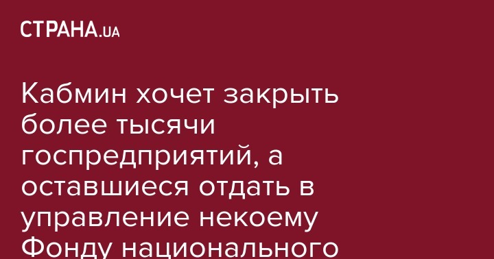 Кабмин хочет закрыть более тысячи госпредприятий, а оставшиеся отдать в управление некоему Фонду национального благосостояния