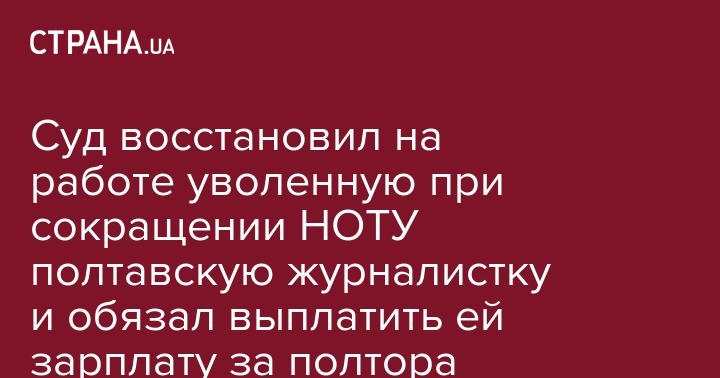 Суд восстановил на работе уволенную при сокращении НОТУ полтавскую журналистку и обязал выплатить ей зарплату за полтора года