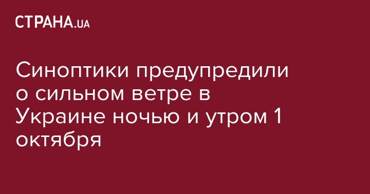 "По данным "Укргидрометцентра", ночью и утром 1 октября в Украине порывы ветра 15-20 м/с", - говорится в сообщении.