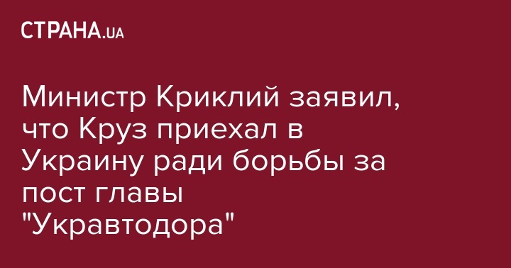 Министр Криклий заявил, что Круз приехал в Украину ради борьбы за пост главы "Укравтодора"