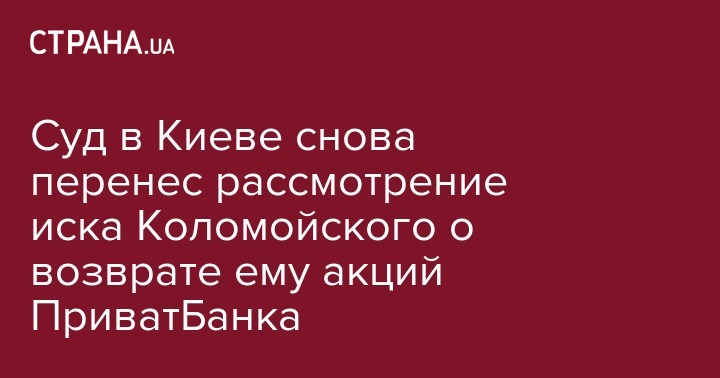 В Хозяйственном суде Киева приняли решение перенести на 8 октября рассмотрение иска бывшего акционера Приватбанка Игоря Коломойского и Triantal Investments Ltd. о признании недействительным договор купли-продажи банка в декабре 2016 года между Минфином и лицами, бывшими на тот момент его акционерами.